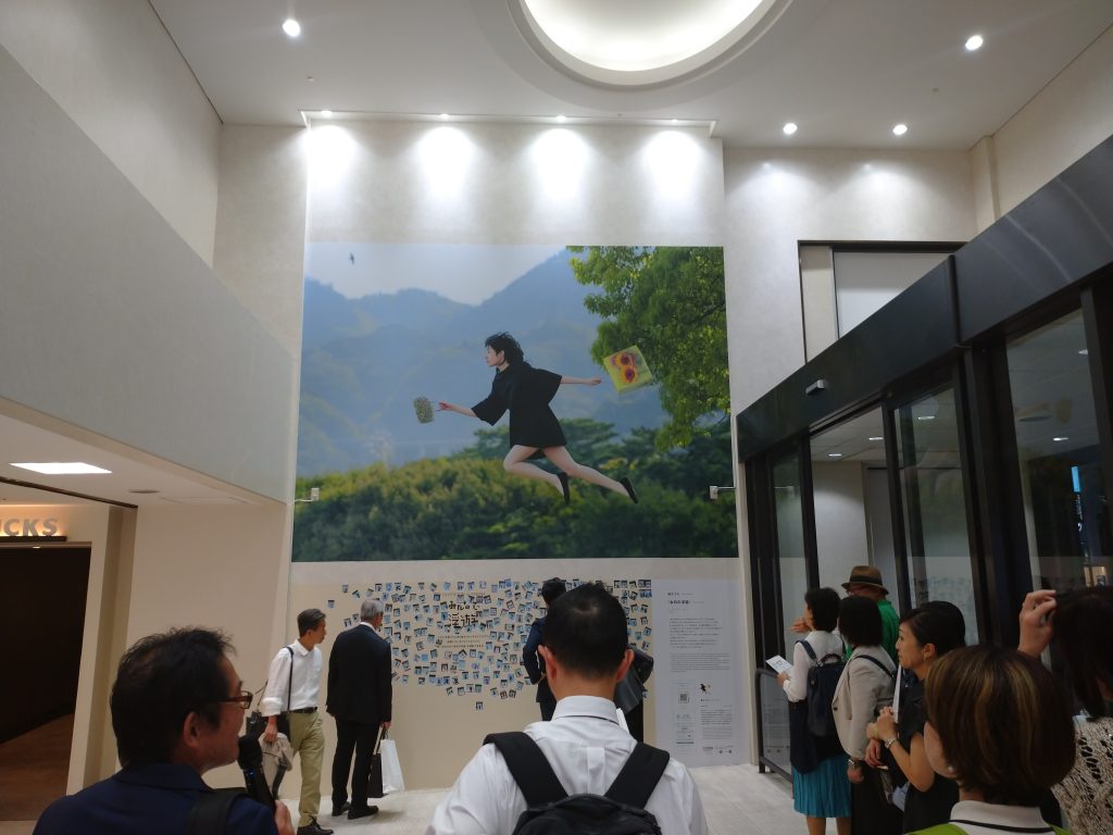 参加者は、芸術祭のメイン会場であるアートプラザに集合した後、宇都宮ディレクターから解説を受けながら、シネマ5、トキハ本店、九州電力大分支店、JR大分駅といった展覧会場を巡って作品を鑑賞した。ザ・キャビンカンパニーの作品「キメラブネ」は2021年に大分駅ホームに展示され、Twitter(現X)で10万いいねを超える反響をもたらした話題作で、今回は駅ホームではなく改札口に巨大な姿を現した。林ナツミの作品は代表作『本日の浮遊』からの一枚である。作家が10年を過ごした大分で、トキハのひまわりの紙袋を片手に撮影された写真が大きく引き伸ばされて、トキハ本店の入口付近に飾られた。